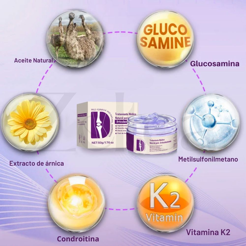 El aceite de emú, un ingrediente de penetración profunda, regenera los tejidos desde su base. No solo calma, sino que reconstruye la estructura articular.